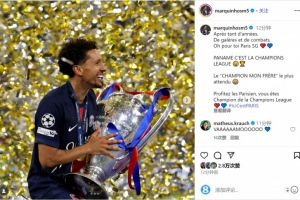 马尔基尼奥斯社媒晒出手捧奖杯的照片,并写道:“经历了这么多年的艰辛与战斗,哦,为你,巴黎圣日耳曼(歌词)。巴黎是欧冠冠军!可以喊出最期待的那句话——‘兄弟,我们是冠军’!”