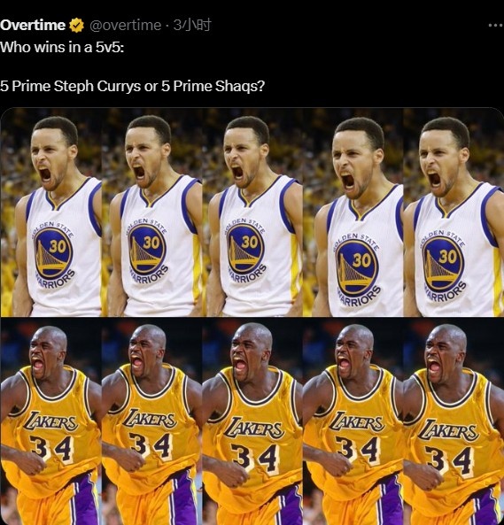8月22日讯 今日美媒Overtime询问奥尼尔,提出“5位巅峰库里对决5位巅峰奥尼尔谁会赢”这一论题。